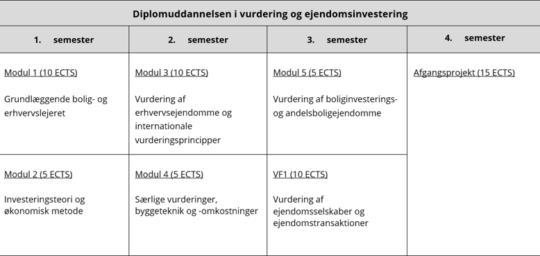 Uddannelsens fagmoduler fremgår i nedenstående oversigt.